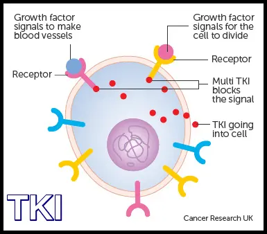 - Slowing or stopping the development of new blood vessels that feed the cancer cell (This type of drug is called an angiogenesis inhibitor)